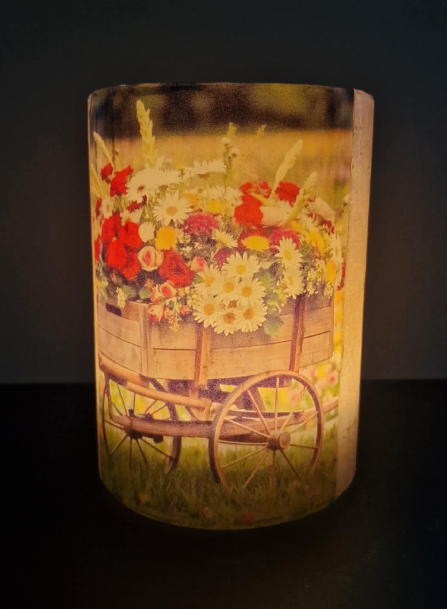 Houten trolley met bloemen