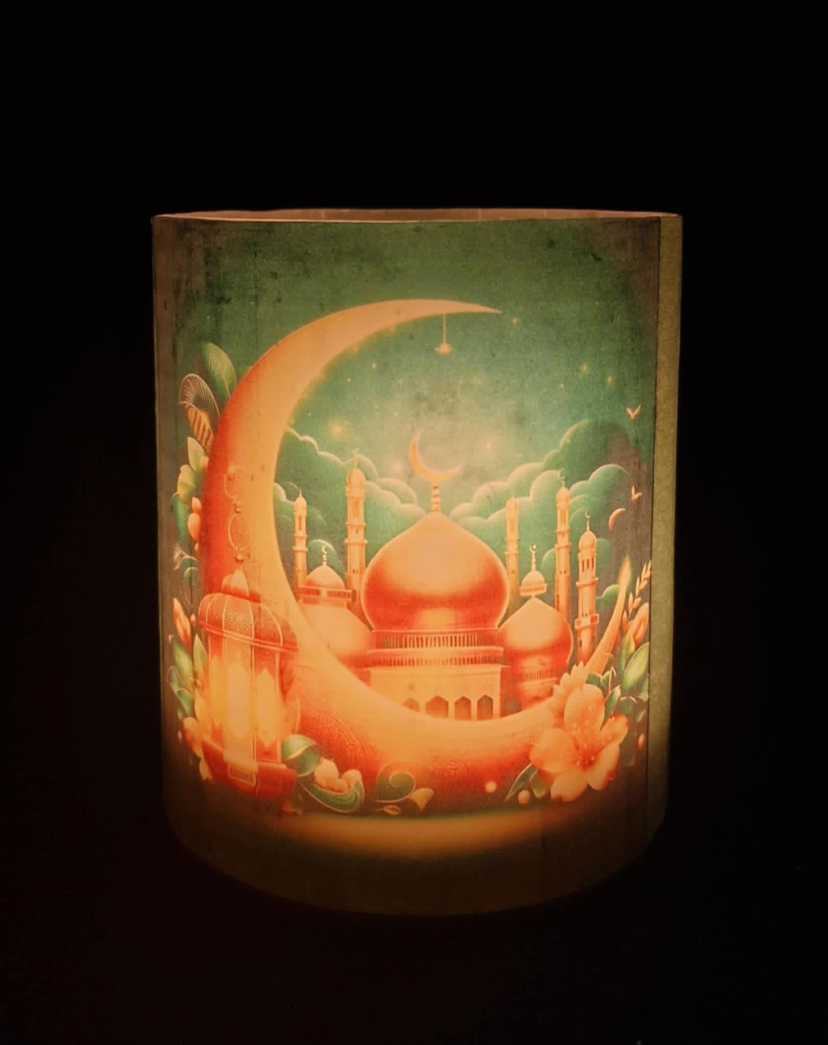 Giet de rijst, die je in het zakje vindt, in de kaarslantaarn, zodat deze de onderkant van de lantaarn bedekt. Plaats vervolgens het waxinelicthje op de rijst en zorg ervoor dat het waxinelichtje zich in het midden van de voet bevindt en niet te dicht bij de wanden van de kandelaar, zodat de wanden niet beschadigd raken door de hitte van de vlam.
