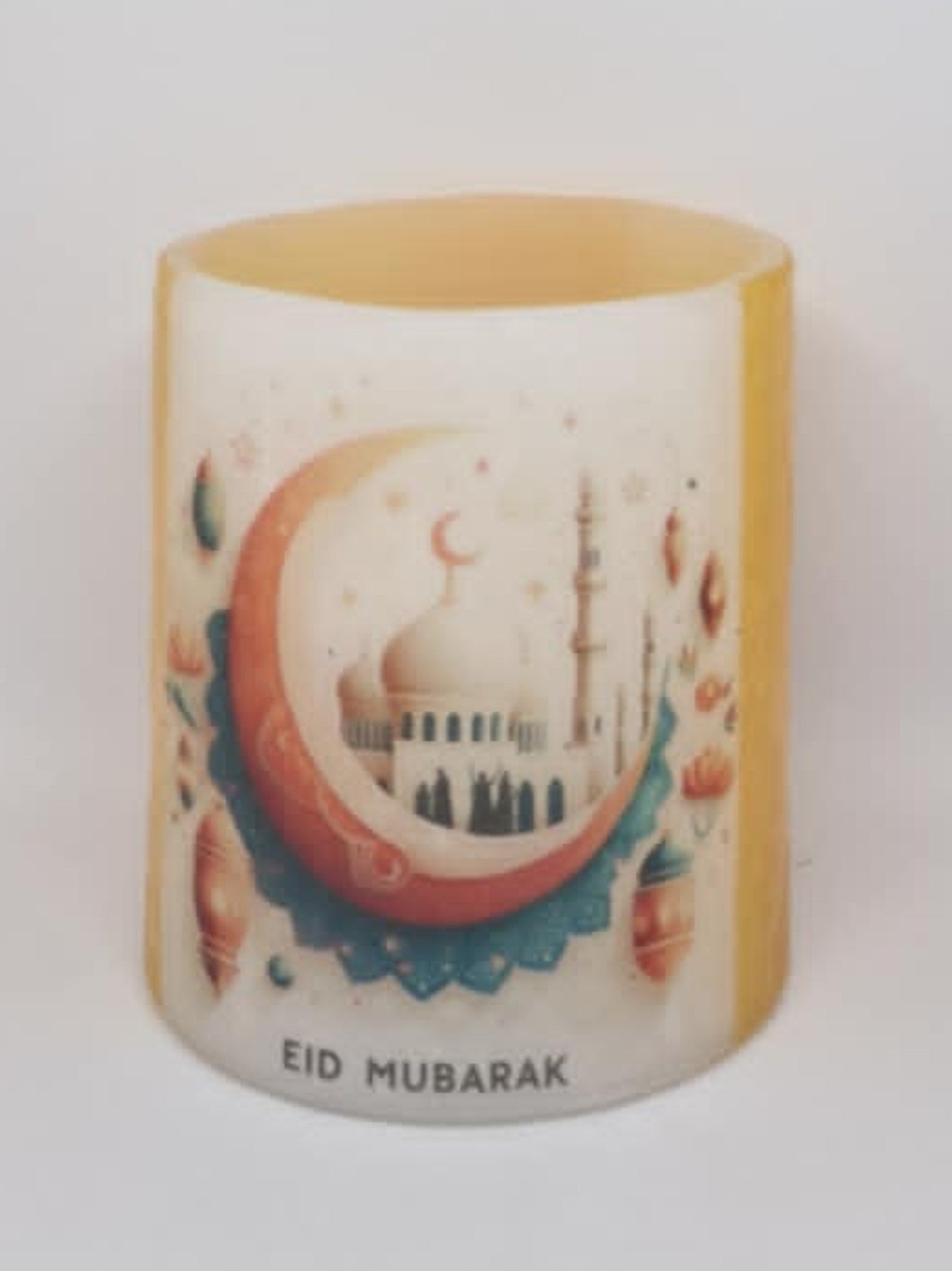 Giet de rijst, die je in het zakje vindt, in de kaarslantaarn, zodat deze de onderkant van de lantaarn bedekt. Plaats vervolgens het waxinelicthje op de rijst en zorg ervoor dat het waxinelichtje zich in het midden van de voet bevindt en niet te dicht bij de wanden van de kandelaar, zodat de wanden niet beschadigd raken door de hitte van de vlam.