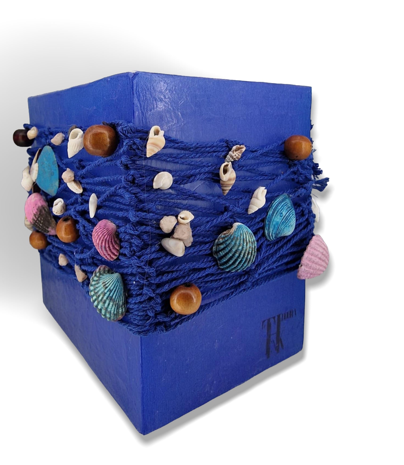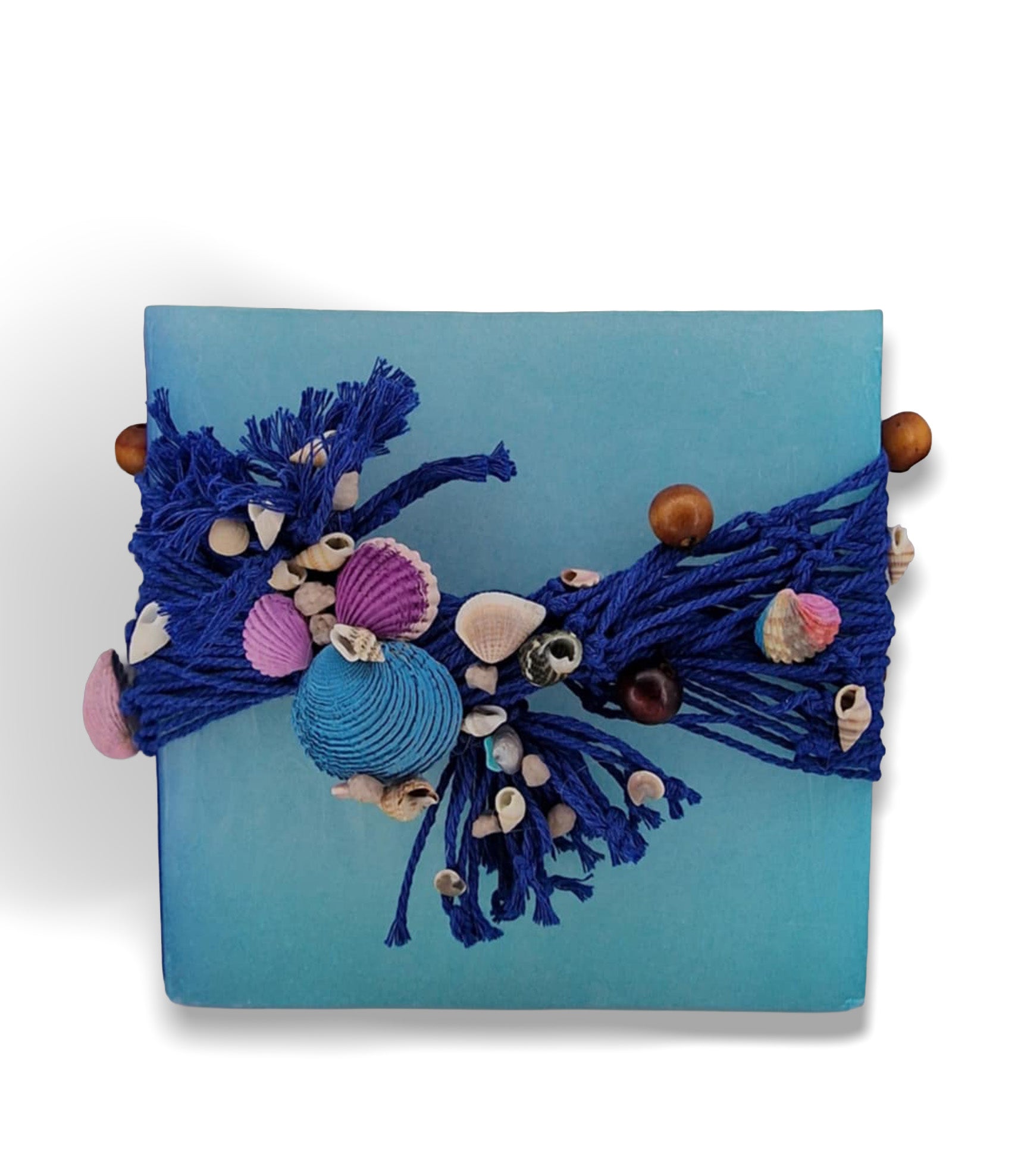 Zeeschelpen en blau vissernet